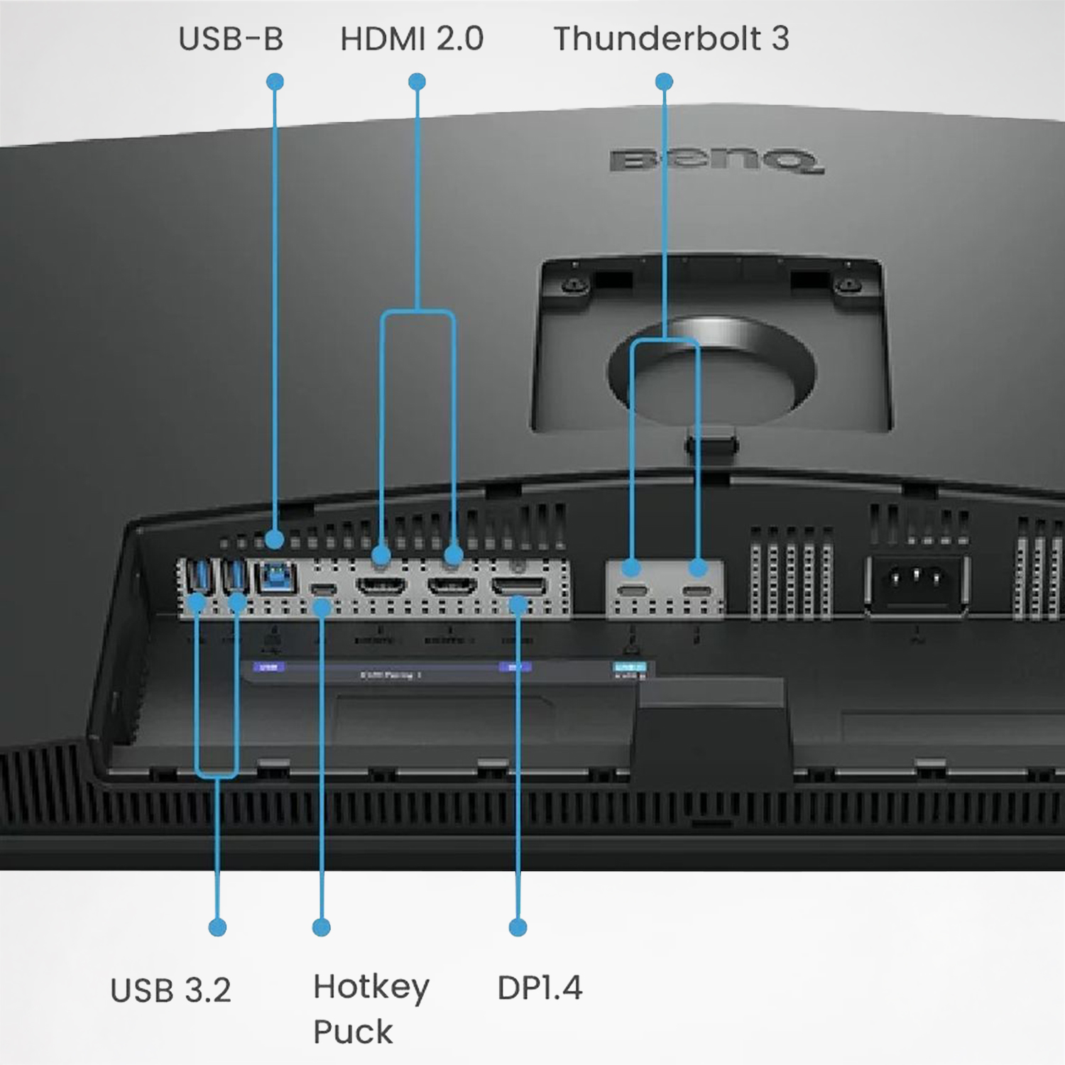 - Lieferumfang: Monitor, Netzkabel, DisplayPort-Kabel, Kalibrierbericht, Hotkey Puck G2, E/A-Abdeckung