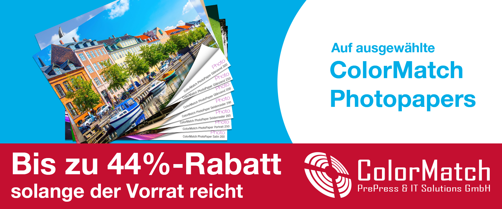Entdecken Sie unsere aktuellen ColorMatch Medien Aktionen – hochwertige Druckmedien zu unschlagbaren Sonderkonditionen. Unsere Aktionsangebote bieten Ihnen die Möglichkeit, erstklassige ColorMatch Medien für den professionellen Druck zu besonders attraktiven Preisen zu sichern.